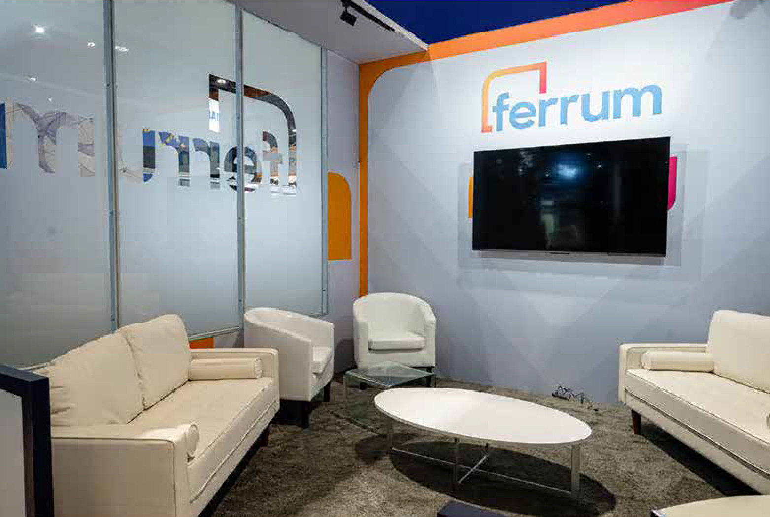 Conversations, demonstrations and a re-branding were the goals behind Ferrum Health’s new 20x40 booth at RSNA. Incorporating not just one semi-private meeting area on the main level, but building up a second space on a raised floor, created an environment that allowed in-depth dialogue, facilitated by several monitors and comfortable lounge furniture that augmented the setting. Mid-way through the design process Ferrum Health underwent a brand re-design and the results were stunning; incorporating bold singleminded statements, an inverted frosted glass wall, and bright colours against a cold grey backdrop created a beautiful contrast that popped on show floor.