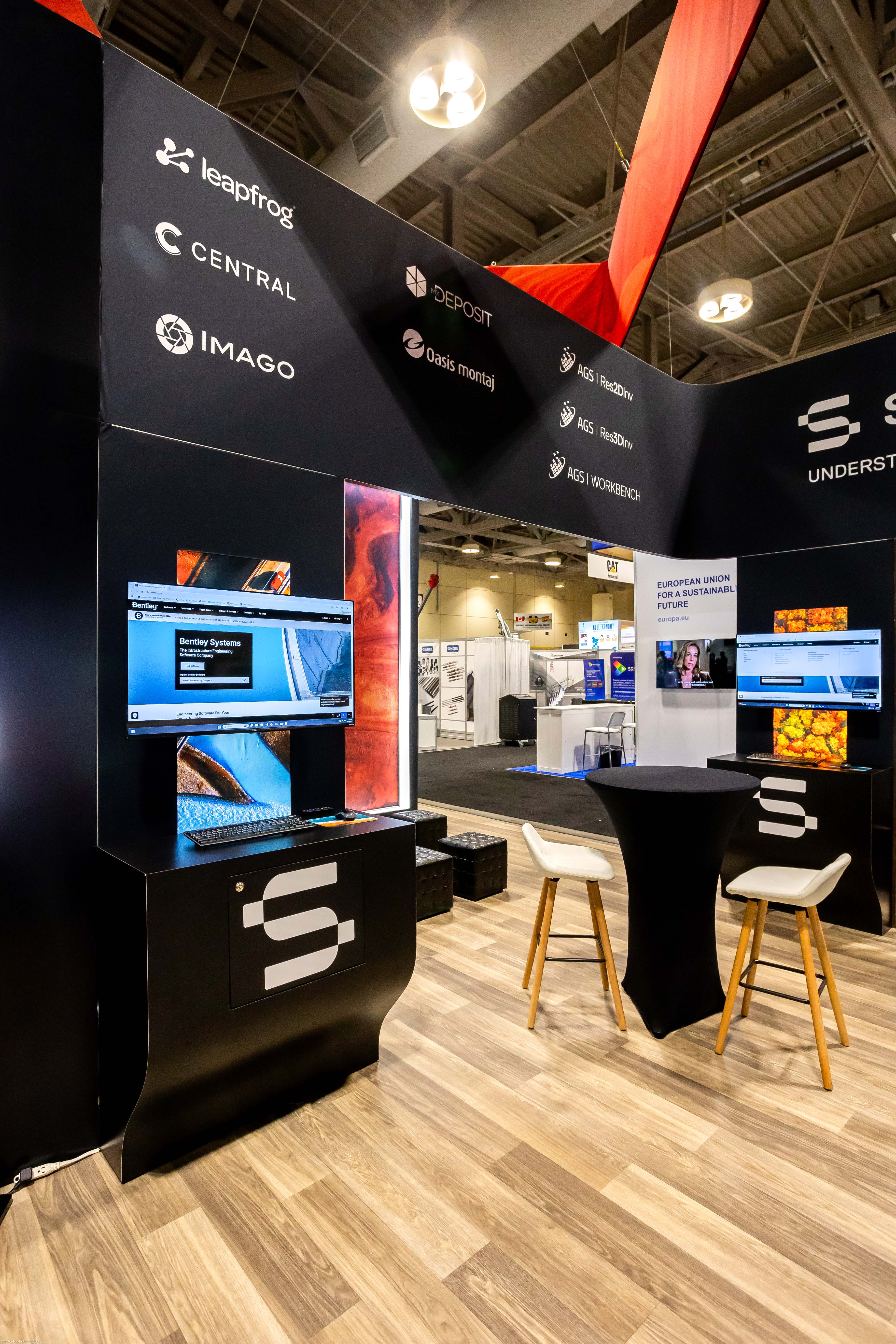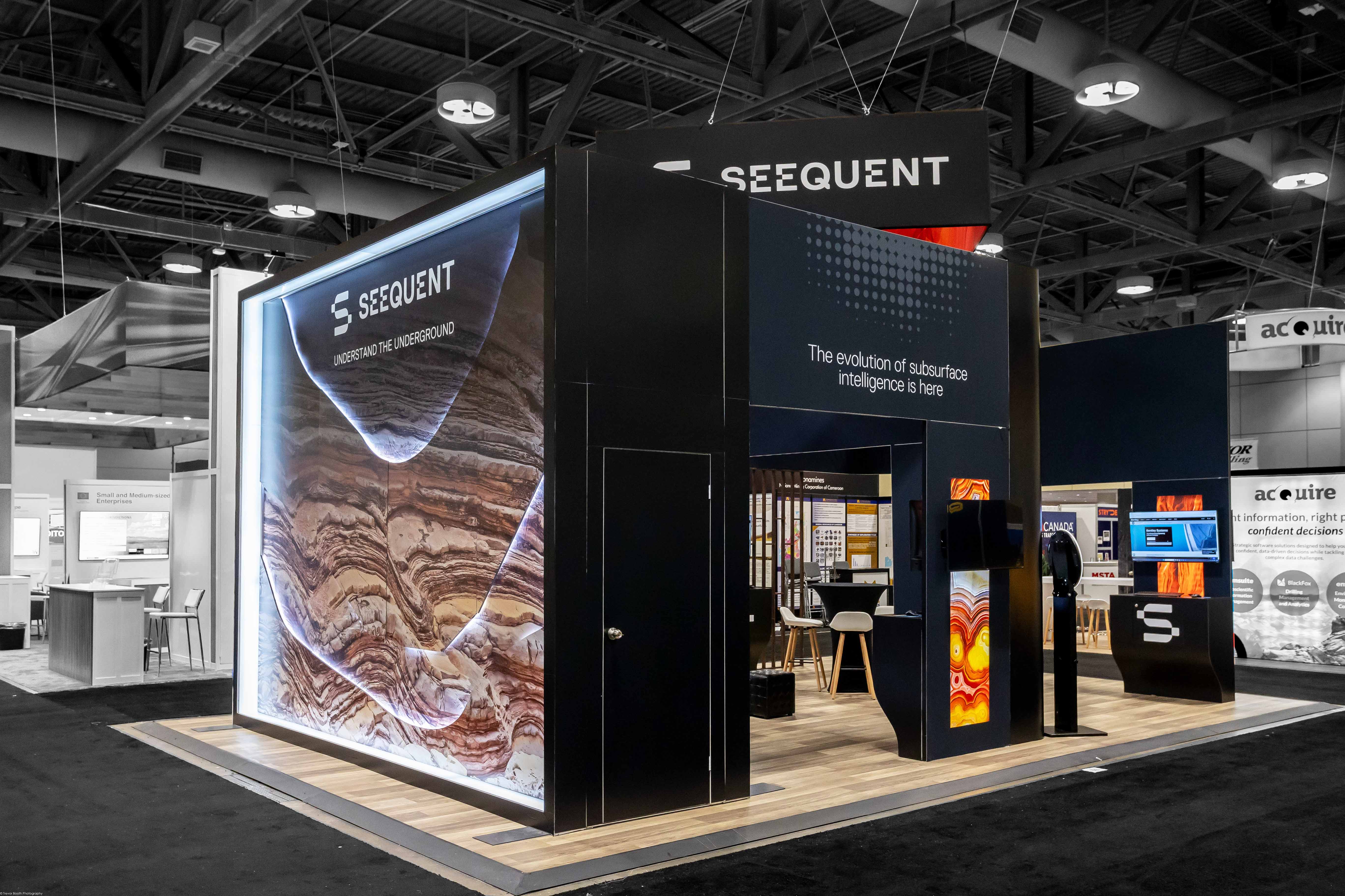 Reveal created a striking trade show experience that garnered unprecedented attention for Seequent at the PDAC Show. Seequent was looking for a multi-use 20’ x 30’ exhibit area with a nod to their industry. Shapes from their S brandmark were incorporated into the design of the space to reinforce branding and create a memorable space for attendees.